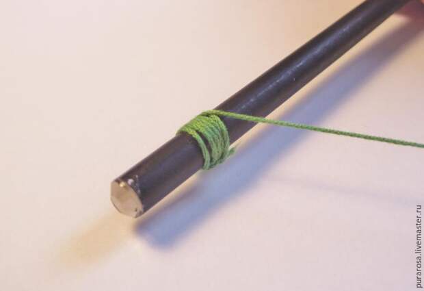 Хочу заметить, что от диаметра вашей основы-петельки будет зависеть размер пуговки. Соответственно, чем больше диаметр основы, тем больше вам придется обвязывать и тем объемнее получится пуговка. Ну и наоборот.